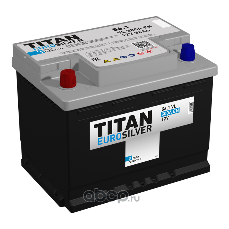 | TITAN | 6СТ561VL | Батарея аккумуляторная 56А/ч 530А прямая полярн. стандартные (Европа) клеммы |