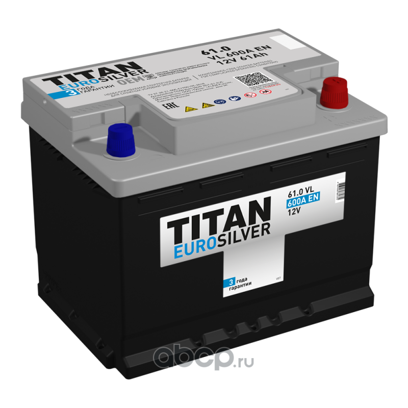 | TITAN | 6СТ610VL | Батарея аккумуляторная TITAN EUROSILVER 61А/ч 600А 12V Обратная полярн. стандартные клеммы | ||