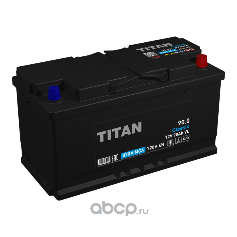 | TITAN | 4607008889918 | Батарея аккумуляторная TITAN Classic 90А/ч 720А 12V Обратная полярн. стандартные клеммы |