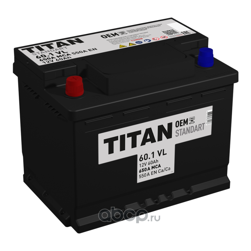 | TITAN | 6СТ601VL | Батарея аккумуляторная TITAN STANDART 60А/ч 550А 12V Прямая полярн. стандартные клеммы | ||
