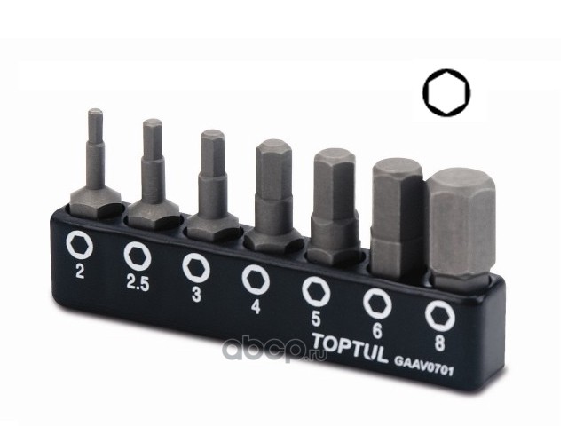 | TOPTUL | GAAV0701 | Набор бит шестигр. 2,2-8мм 7шт. | ||