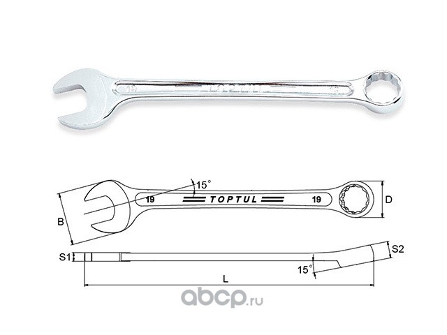 | TOPTUL | AAEX1919 | Ключ комбинированный 19мм 15° |