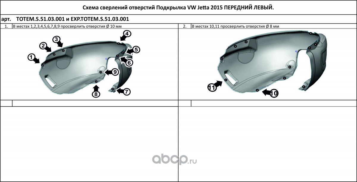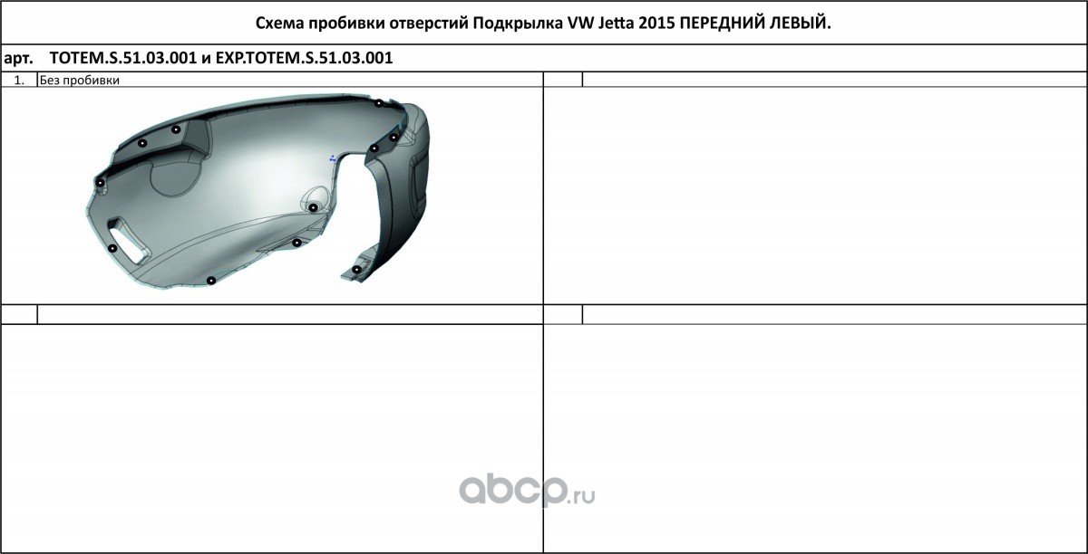 | TOTEM LINERS | TOTEMS5103001 | Подкрылок с шумоизоляцией VOLKSWAGEN Jetta, 2015-> (передний левый) | ||