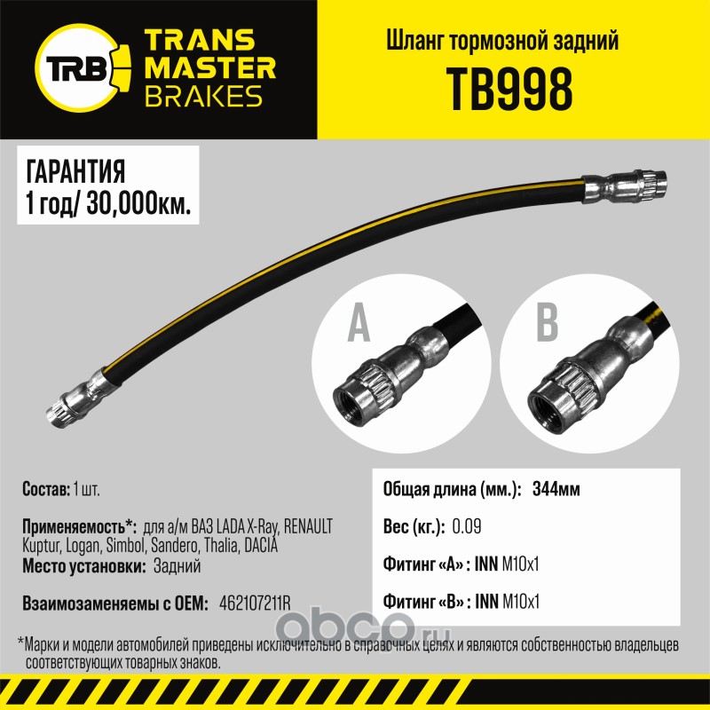 TRANSMASTER TB998 Шланг тормозной