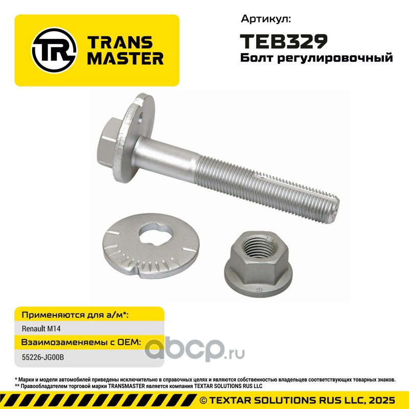 | TRANSMASTER | TEB329 | Болт регулировочный М14 | ||