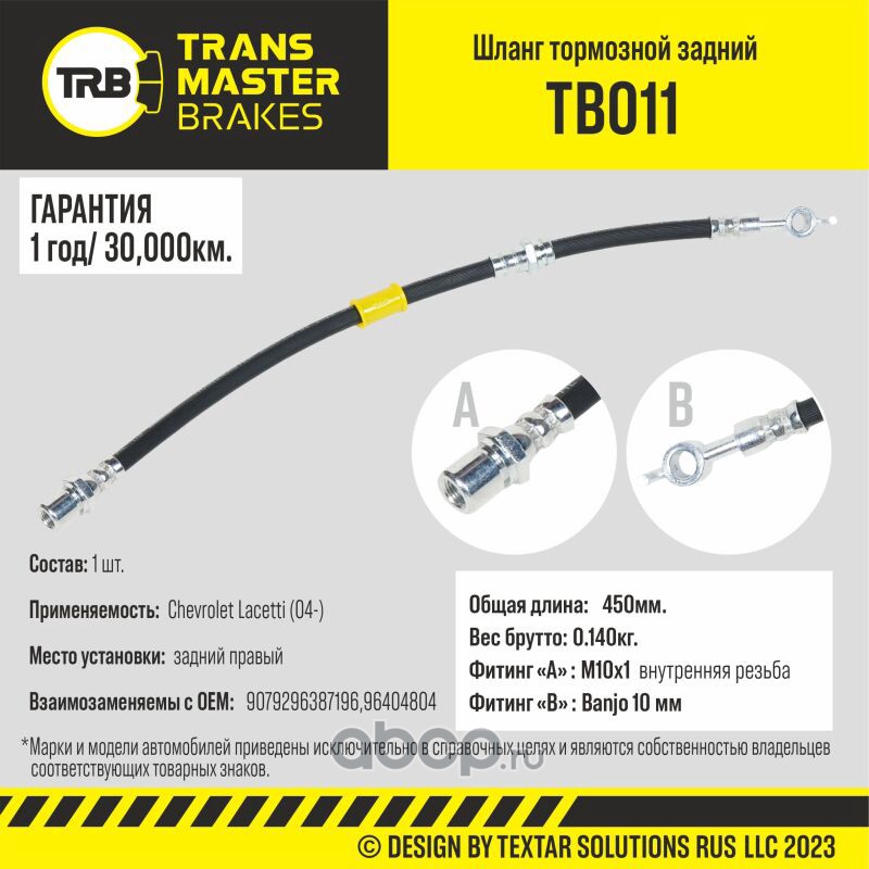 TRANSMASTER TB011 Шланг тормозной