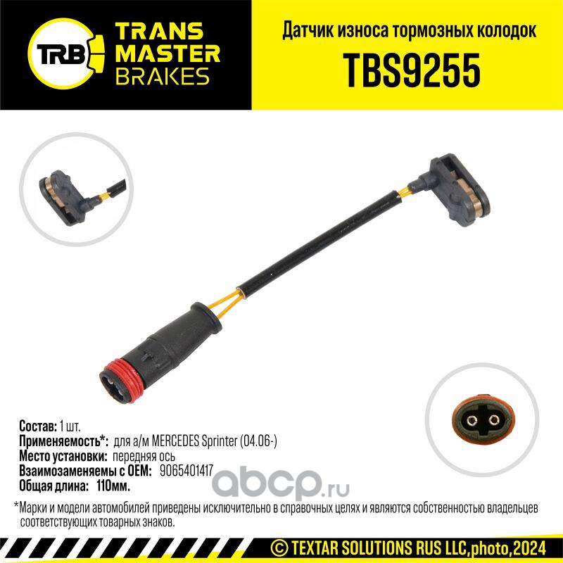 TRANSMASTER TBS9255 Датчик износа тормозных колодок