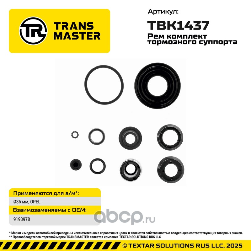 TRANSMASTER TBK1437 Ремкомплект тормозного суппорта