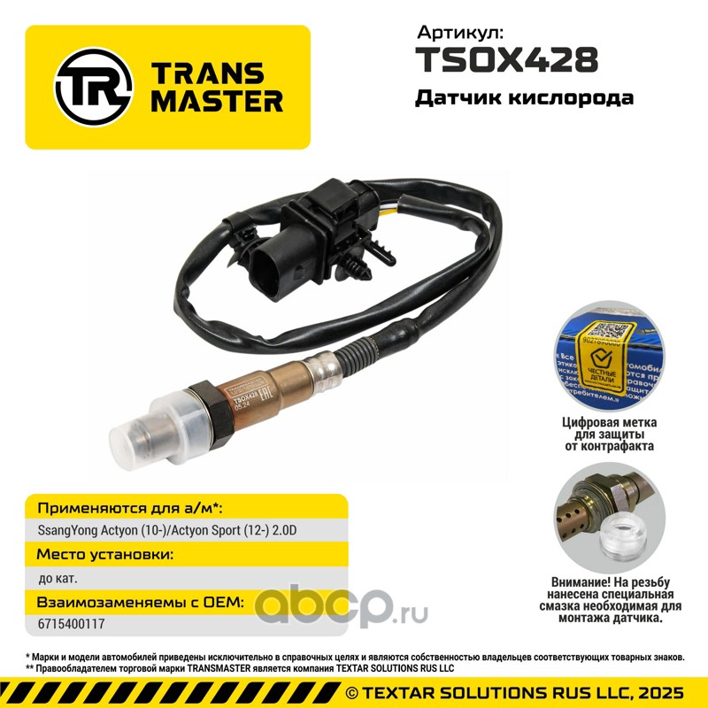 В 2024 году марка TRANSMASTER перешла в полное владение компании TEXTAR SOLUTIONS RUS LLC, которая взяла на себя разработку новых продуктов и управление всеми производственными процессами. Новым этапом сотрудничества стал аудит производства деталей выхлопной системы. Это позволило расширить применение нержавеющей стали для производства компонентов выхлопной системы и вывести на рынок новые товарные позиции.