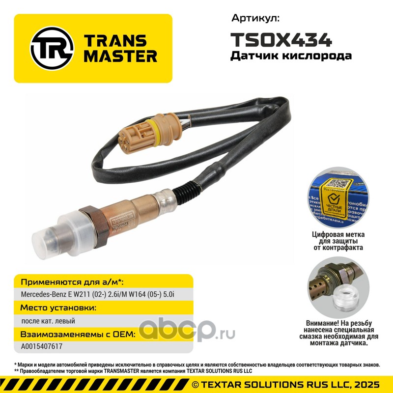 TRANSMASTER – одна из старейших марок автомобильных запасных частей в современной России, которая в настоящий момент принадлежит компании TEXTAR SOLUTIONS RUS LLC.