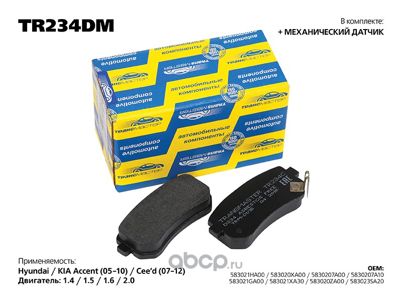 | TRANSMASTER | TR234DM | Колодка дискового тормоза с накладками в сборе задняя ось | ||