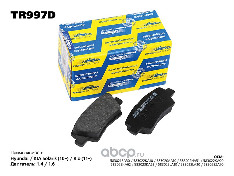 | TRANSMASTER | TR997D | Колодка дискового тормоза с накладками в сборе задняя ось | ||