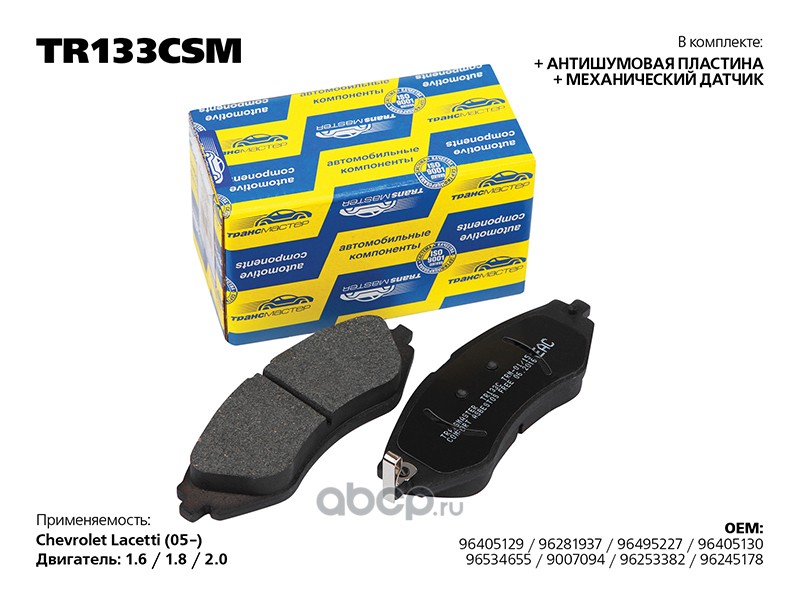 | TRANSMASTER | TR133CSM | Колодка дискового тормоза с накладками в сборе с антишумной пластиной | ||
