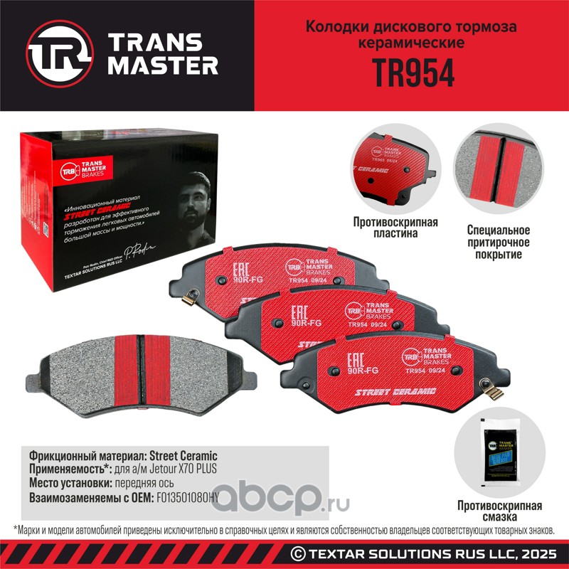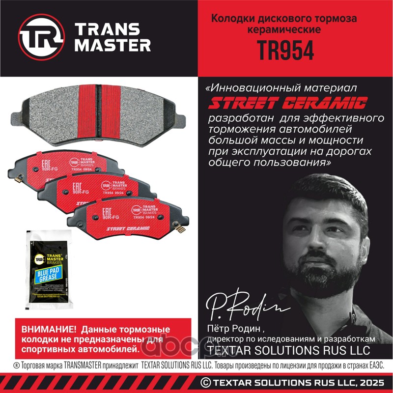 TRANSMASTER TR954 Колодки дискового тормоза керамические