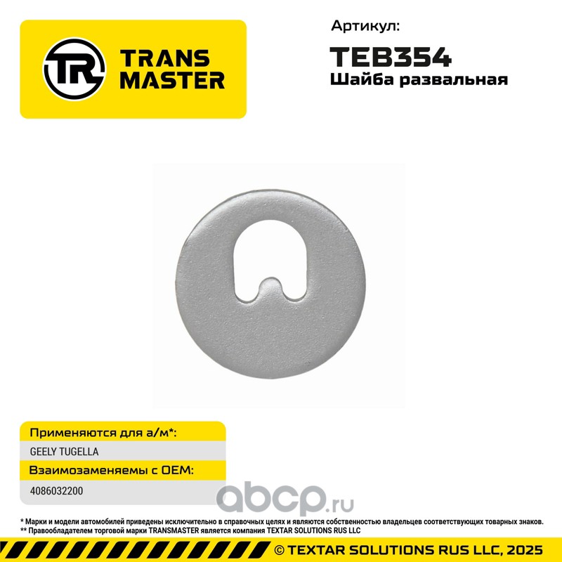 | TRANSMASTER | TEB354 | Шайба развальная GEELY TUGELLA |