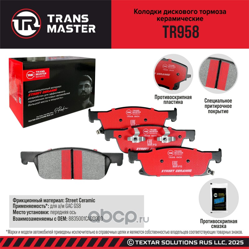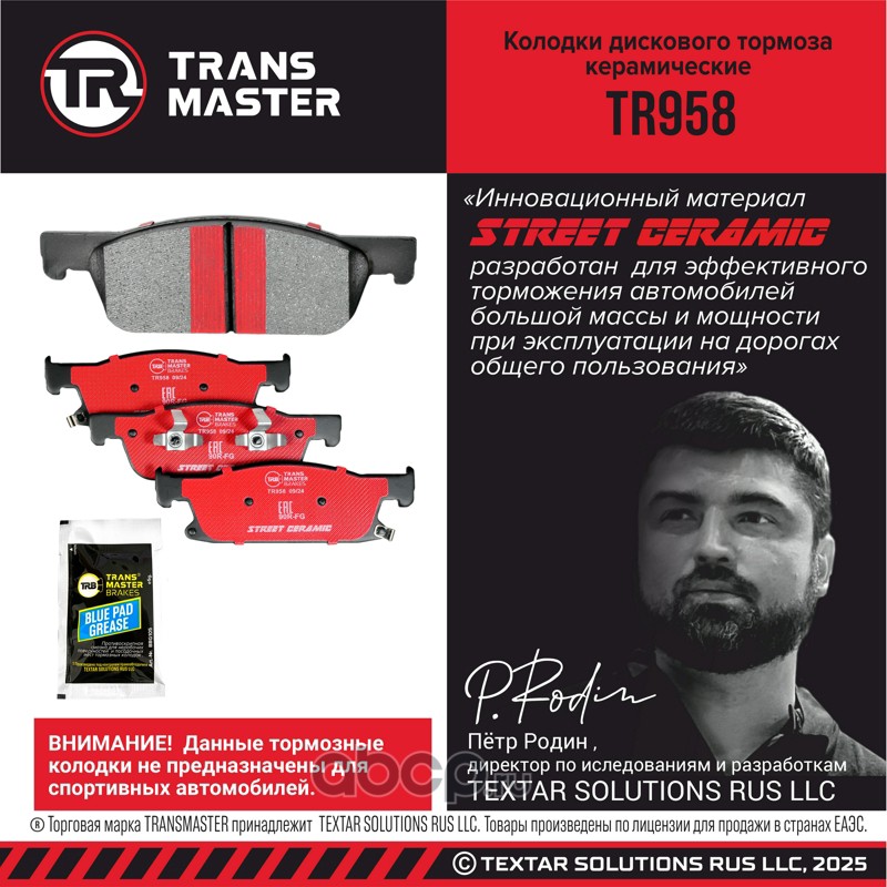 TRANSMASTER TR958 Колодки дискового тормоза керамические