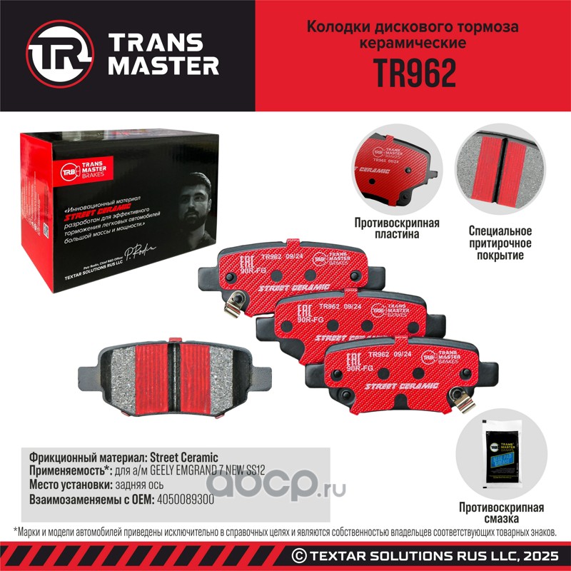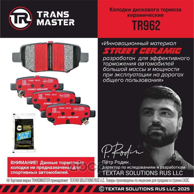 TRANSMASTER TR962 Колодки дискового тормоза керамические