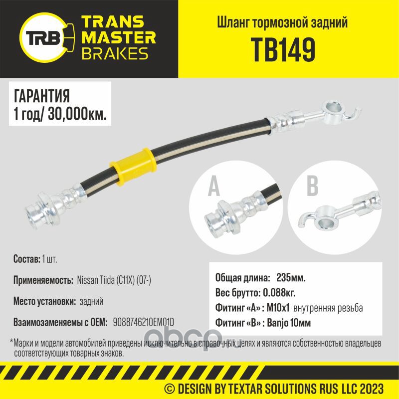 TRANSMASTER TB149 Шланг тормозной