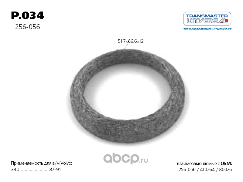 TRANSMASTER UNIVERSAL P034 Кольцо уплотнительное глушителя улучшенное (прессованная проволока с синтетической слюдой)