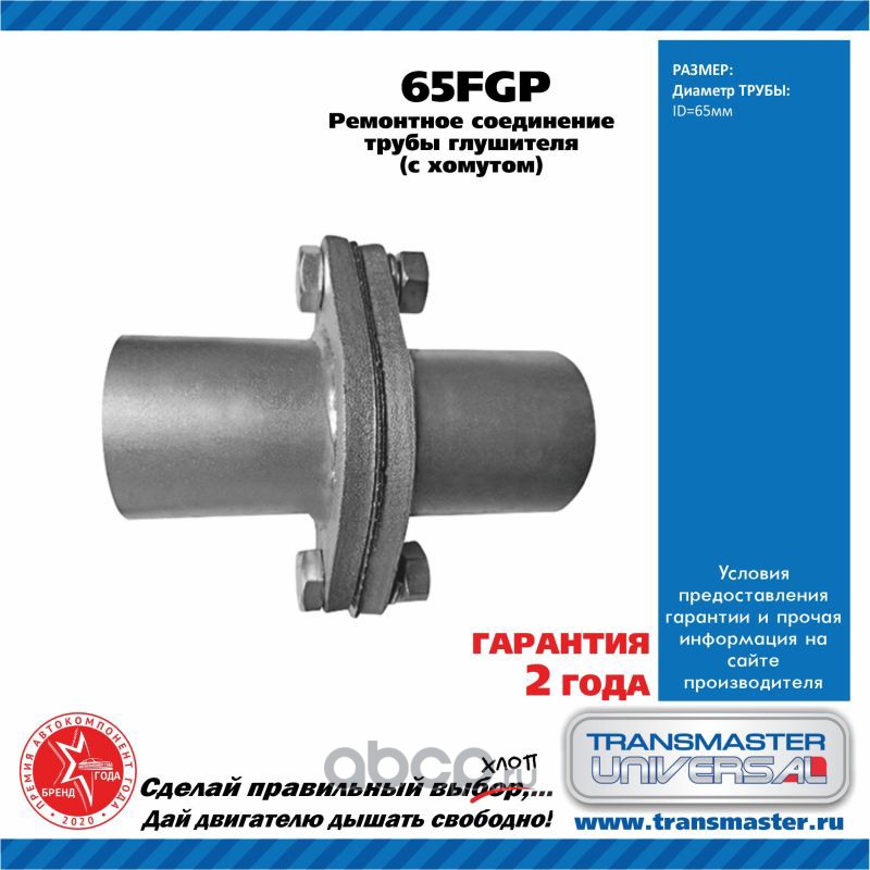 TRANSMASTER UNIVERSAL 65FGP Фланцы глушителя в сборе с патрубками d65 мм ромб комплект 2 шт. с прокладкой и метизами