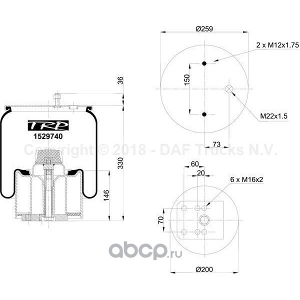 | TRP | 1529740 | Пневморессора в сборе BPW 30K | ||