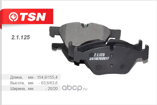 | TSN | 21125 | Комплект тормозных колодок, дисковый тормоз | ||