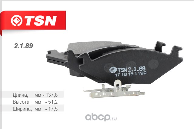 | TSN | 2189 | Колодки тормозные дисковые |