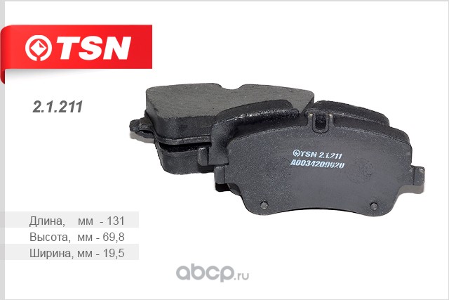 | TSN | 21211 | Комплект тормозных колодок, дисковый тормоз | ||