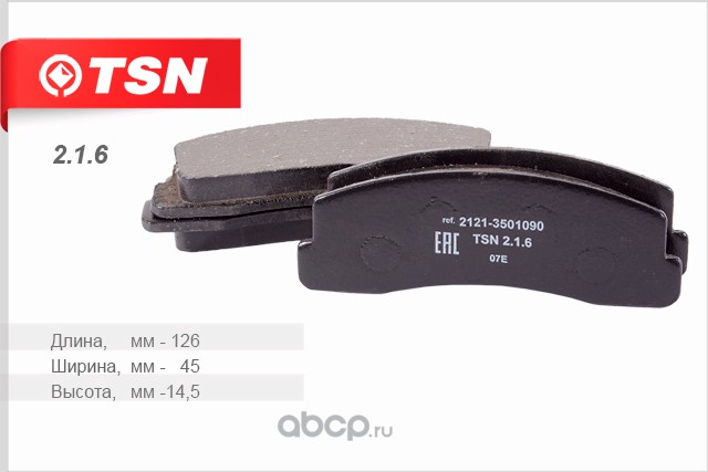 | TSN | 216 | Колодки тормозные дисковые ВАЗ 2123 CHEVROLET-Niva 2121 ВАЗ 2123 CHEVROLET-Niva 2121 | ||