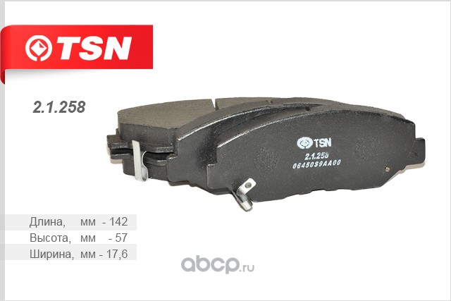 | TSN | 21258 | Комплект тормозных колодок, дисковый тормоз | ||