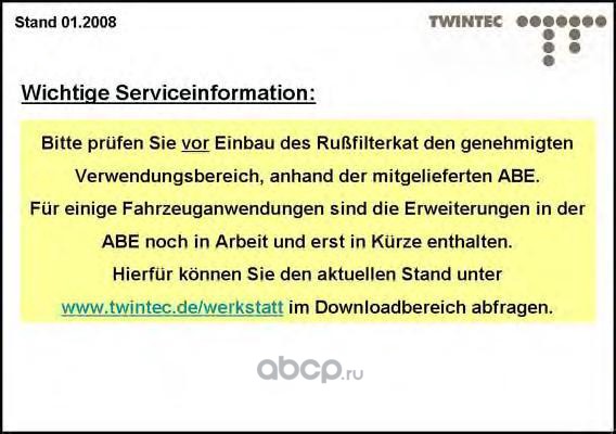 | TWIN-TEC | 25614603 | Комплект дооснащения, сажевый / частичный фильтр | ||