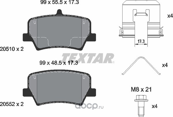 | Textar | 2051001 | Комплект тормозных колодок, дисковый тормоз | ||