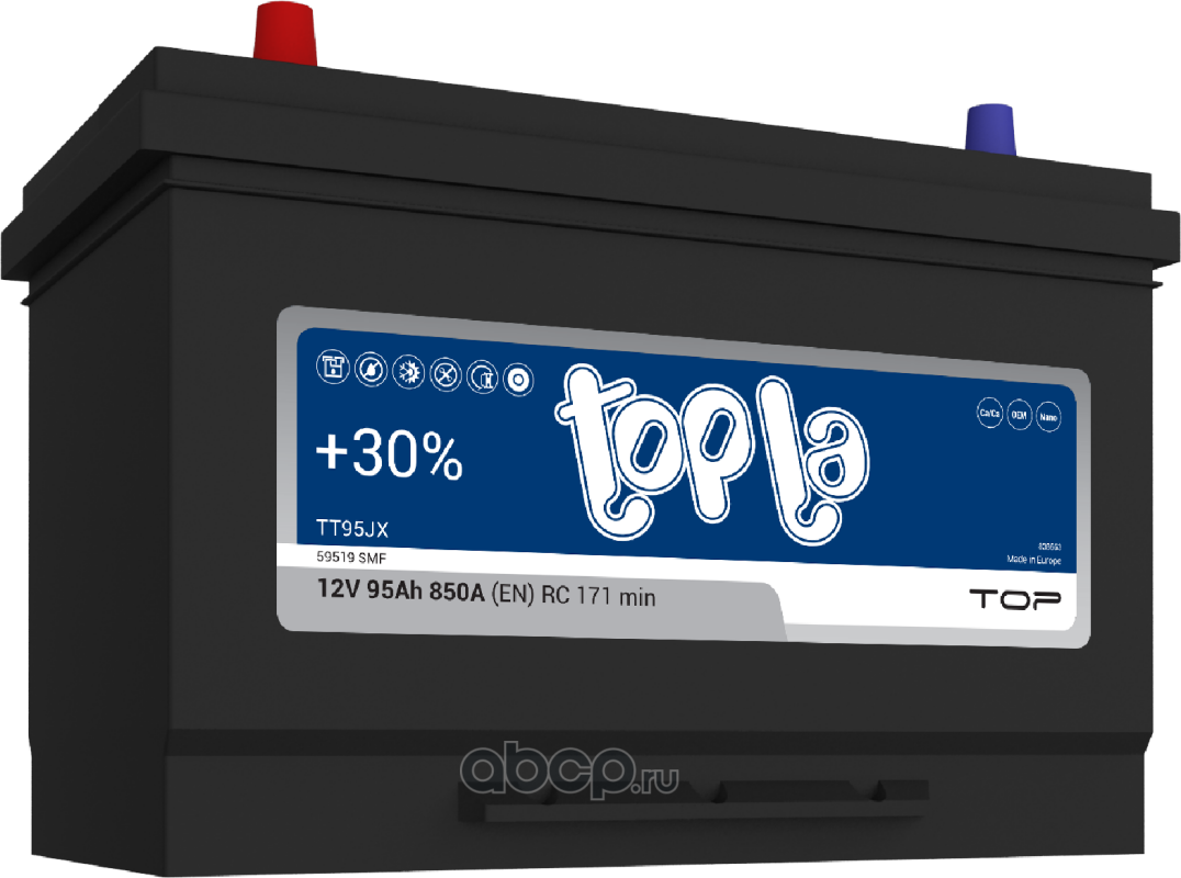 Topla 1000337 Батарея аккумуляторная 95А/ч 850А 12В прямая полярн. выносные (Азия) клеммы