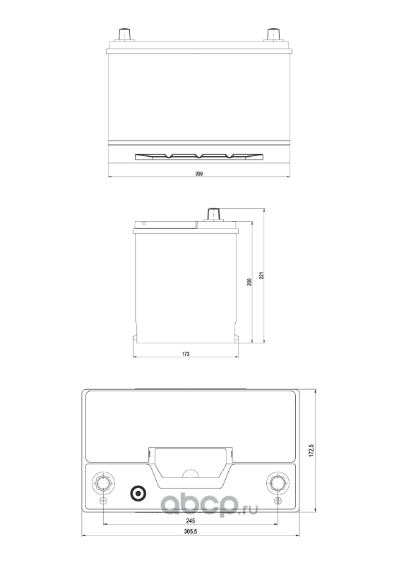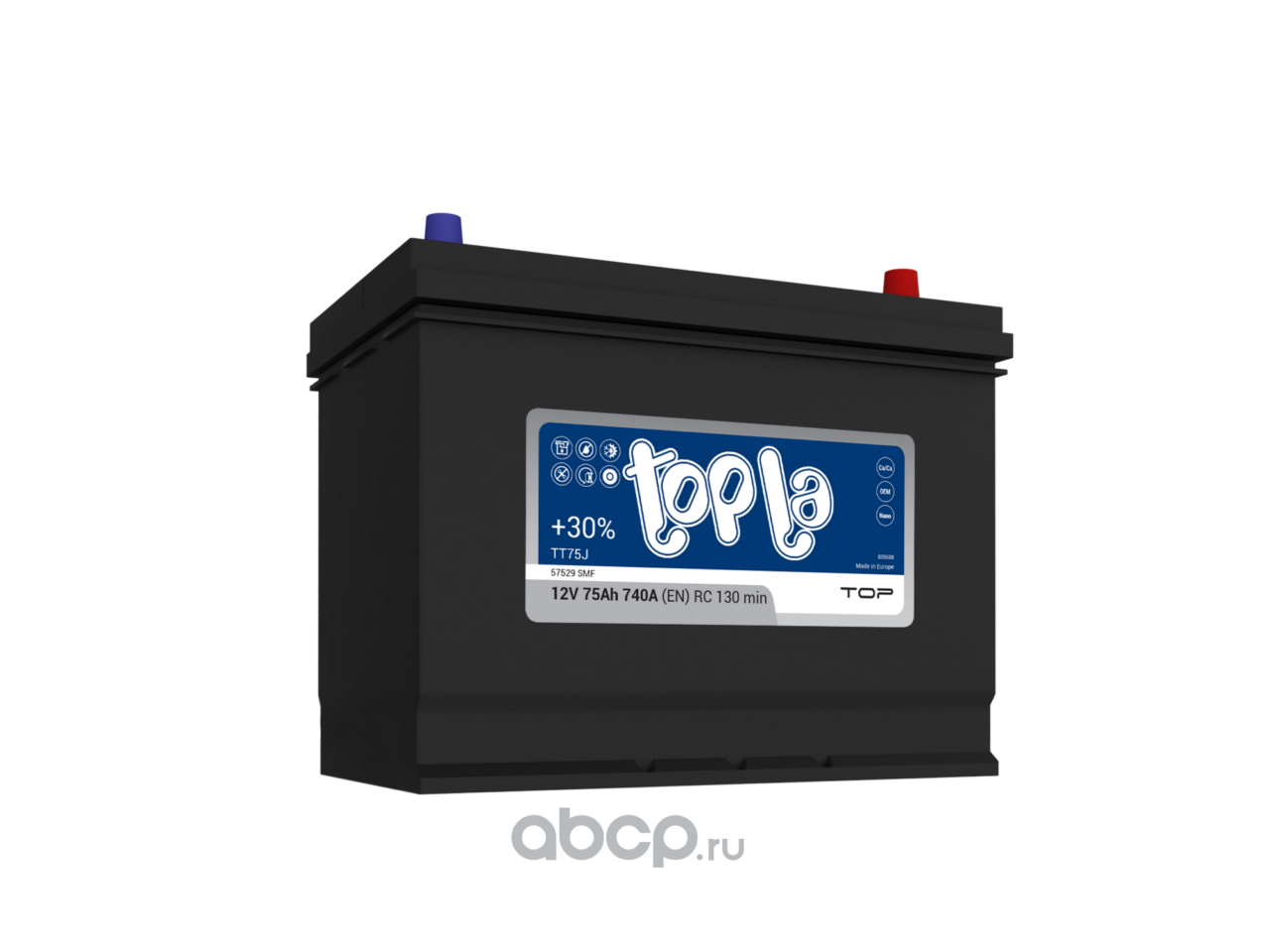 Topla 6CT75L0 Батарея аккумуляторная 75А/ч обратная полярн. стандартные (Европа) клеммы