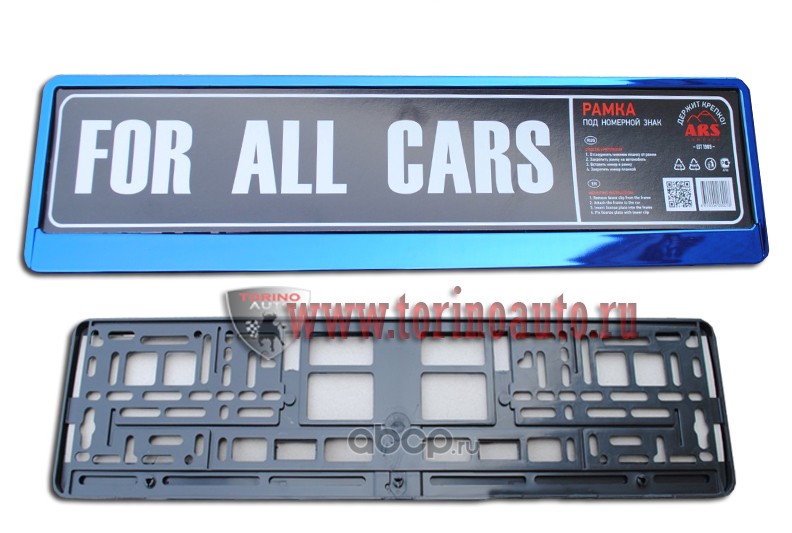 Рамка для ГОС. номерного знака пластик двусостовная ARS STYLE черная тиснение синий хром/50