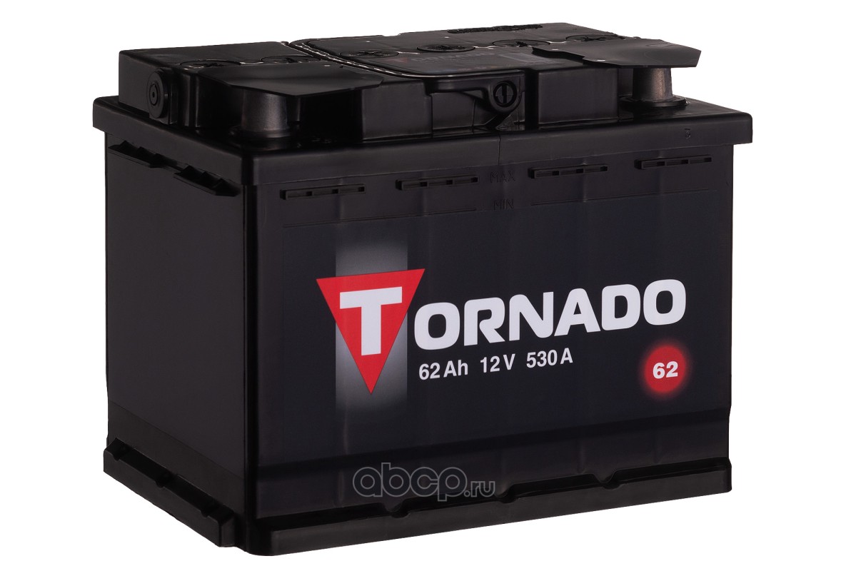 | Tornado | 562108080 | Батарея аккумуляторная 62А/ч 530А 12В обратная полярн. стандартные (Европа) клеммы | ||