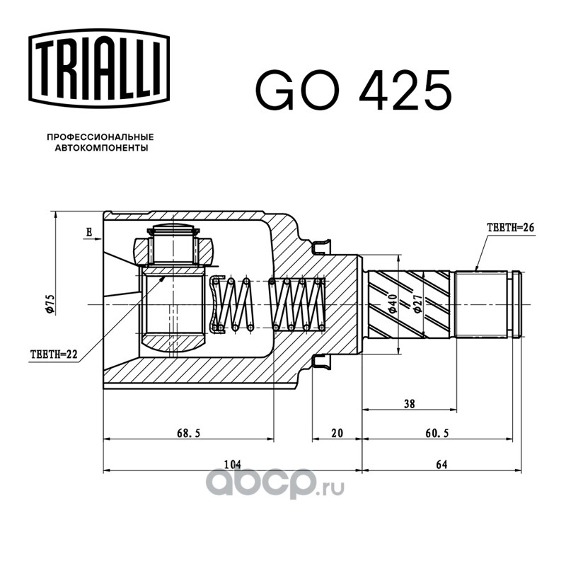 | Trialli | GO425 | ШРУС внутренний для автомобилей Лада Largus (12-) 1.6i 16V MT | ||