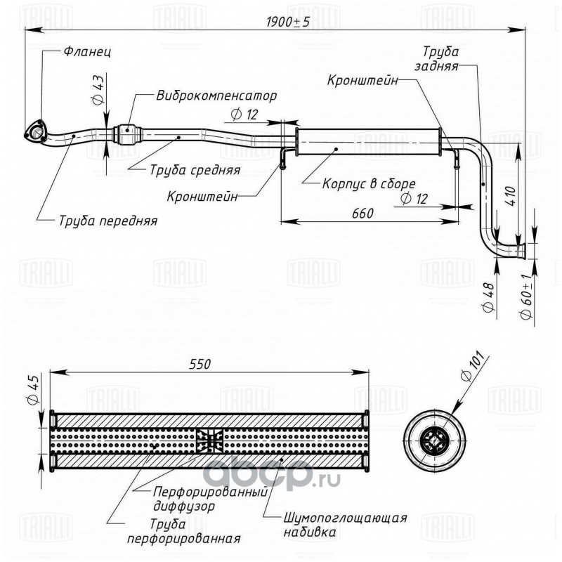 | Trialli | EAM0121 | Глушитель для автомобилей Лада 2170 дополнительный (резонатор) с гофрой (алюминизированная сталь) | ||