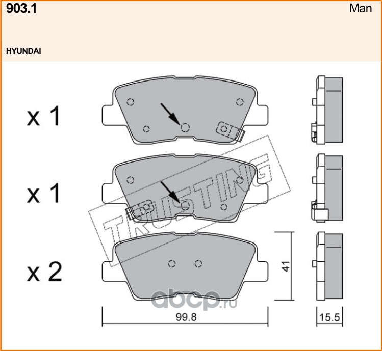 | Trusting | 9031 | Монтажный комплект тормозных колодок, дисковый тормоз | ||