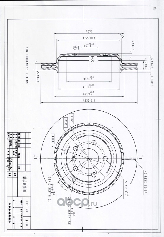 | UBS | BP2209005 | Тормозной диск задний | ||
