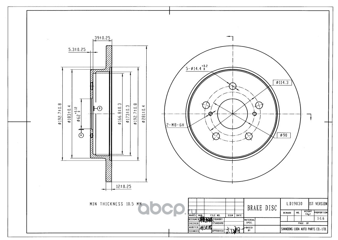 | UBS | BP2109006 | Тормозной диск передний | ||