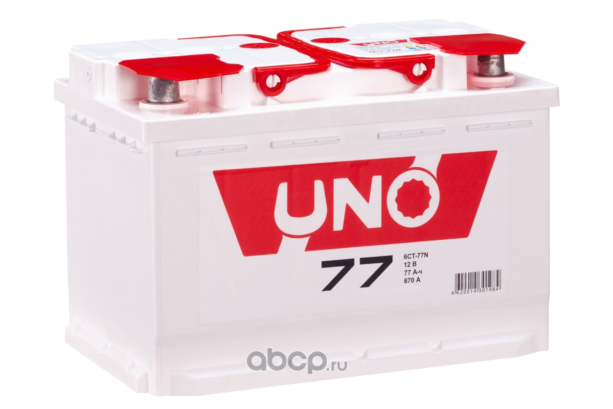 UNO | 4620014301984 | Батарея аккумуляторная 77А/ч 670А прямая полярн. стандартные (Европа) клеммы | |
