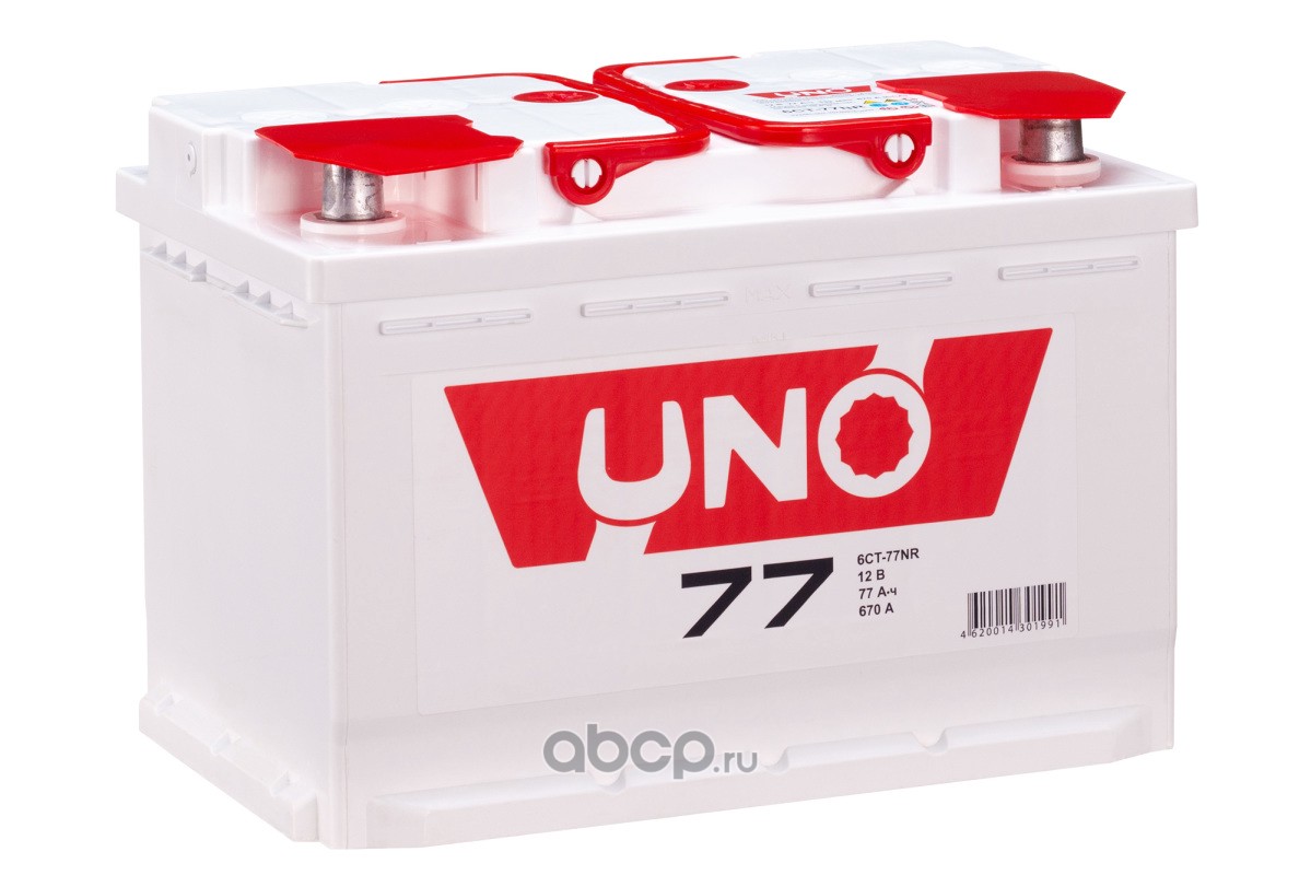 UNO | 4620014301991 | Батарея аккумуляторная 77А/ч 670А обратная полярн. стандартные (Европа) клеммы | |