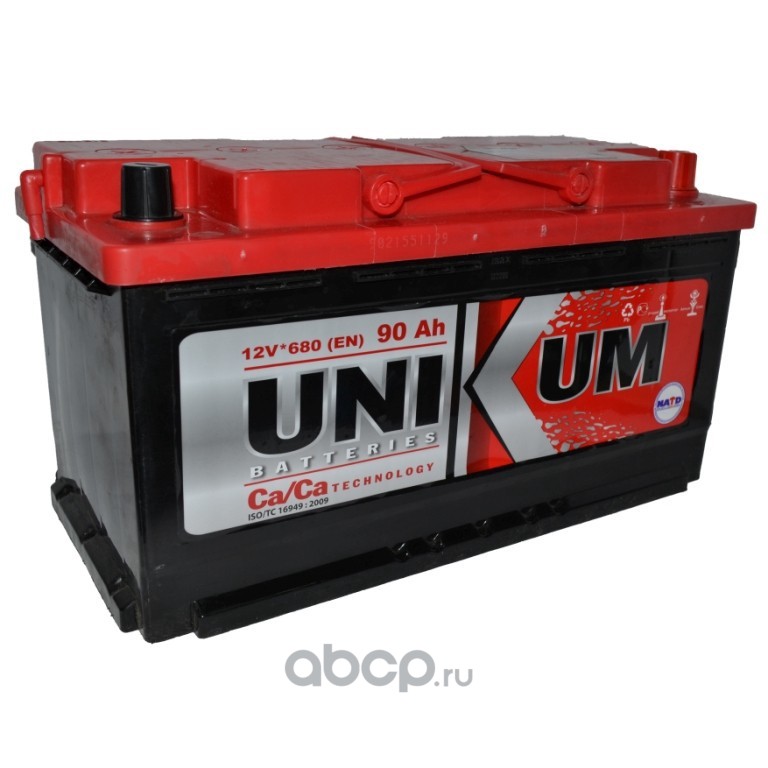 Unikum | 6СТ90АЗ | Батарея аккумуляторная 90А/ч 680А обратная полярн. стандартные (Европа) клеммы | |