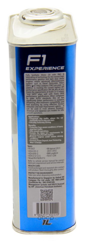 | United Oil | 8886351302220 | Масло моторное синтетика United Oil UNITED F1 EXPERIENCE 5W-30 1 л. | ||