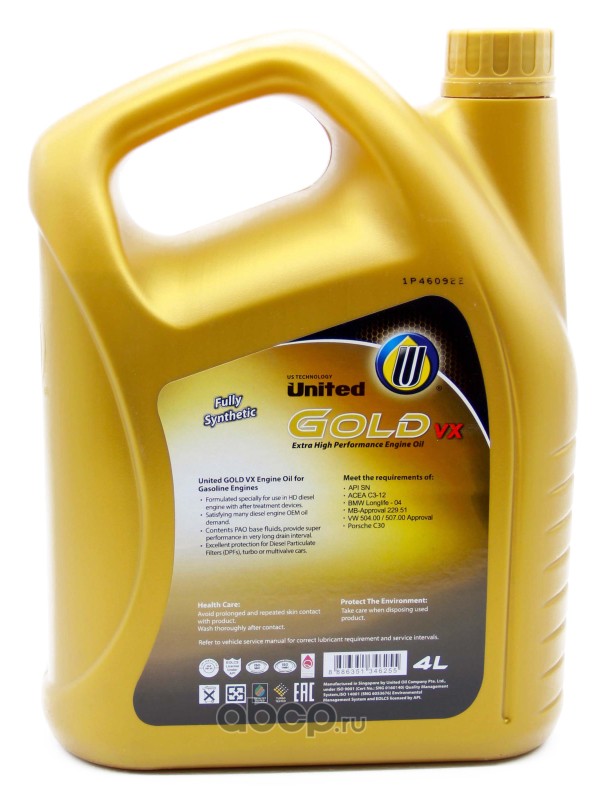 | United Oil | 8886351346255 | Масло моторное синтетика United Oil UNITED GOLD VX 5W-30 4 л. | ||