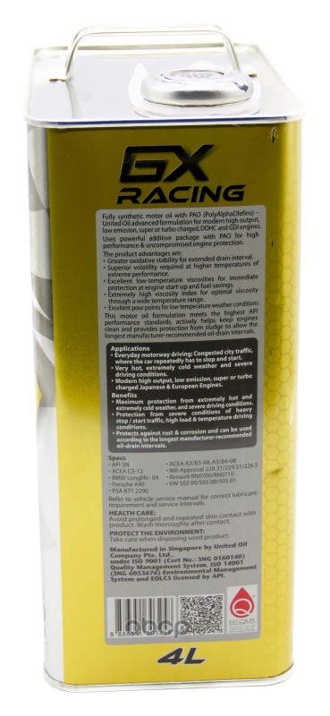 | United Oil | 8886351303258 | Масло моторное синтетика United Oil UNITED GX RACING 5W-40 4 л. | ||