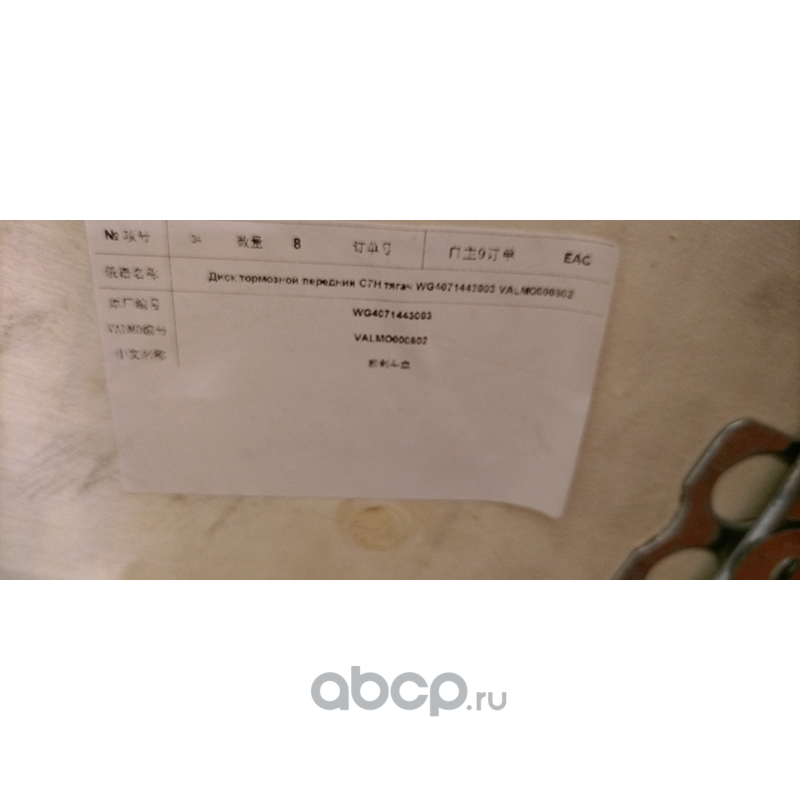 VALMO VALMO000802 Диск тормозной передний