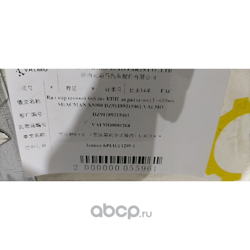 VALMO VALMO0001264 Вал карданный 6х6 (от КПП до раздатки)
