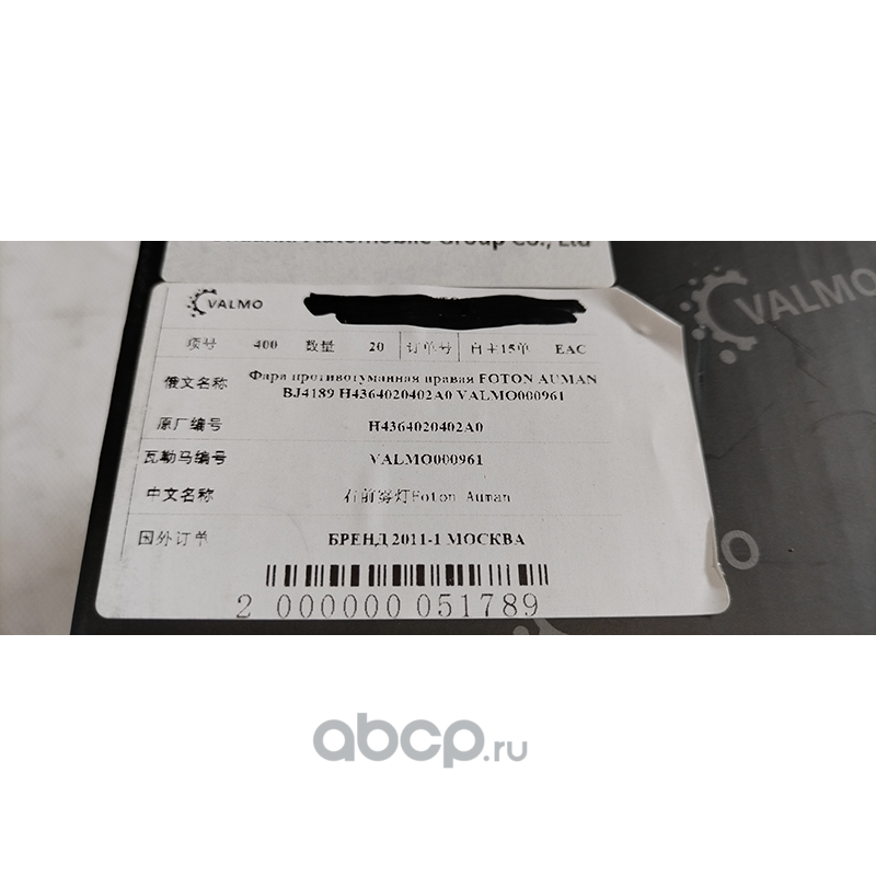 VALMO VALMO000961 Фара противотуманная правая